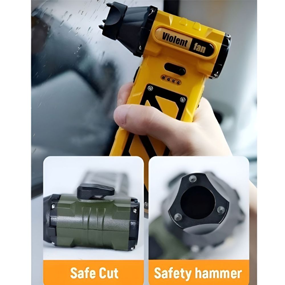 Built with durable ABS material and a high-speed motor, it’s perfect for car interiors, keyboards, air vents, sofas, pet hair drying, and more. The integrated safety belt cutter adds extra emergency protection, making it an essential multi-purpose tool for your vehicle.