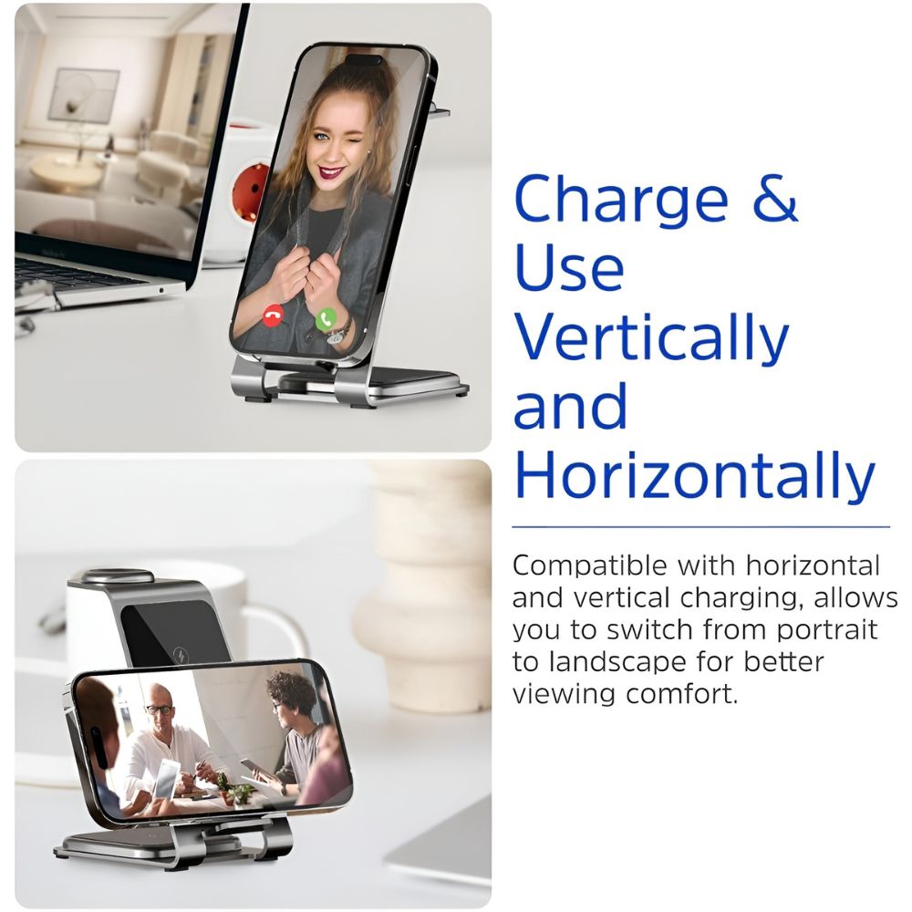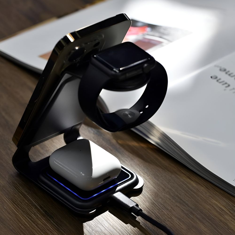 • 3-in-1 Wireless Charging – Charge phone, smartwatch, and earbuds at the same time
