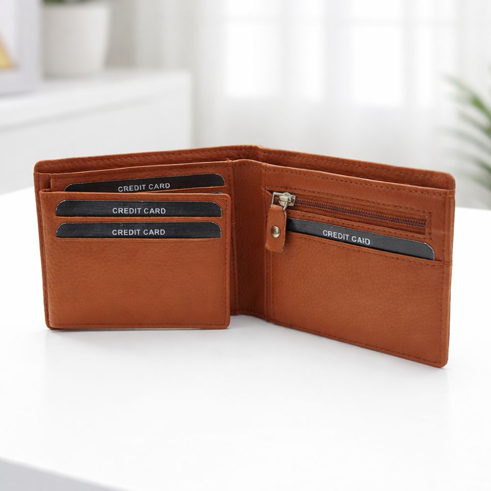 Upgrade your everyday carry with this stylish bi-fold wallet designed for both functionality and elegance. Crafted with a premium textured finish, this wallet offers ample space for cards, cash, and coins while maintaining a slim profile. The secure zipper coin pocket keeps loose change safe, making it a perfect choice for daily use or gifting.