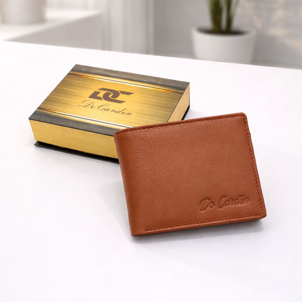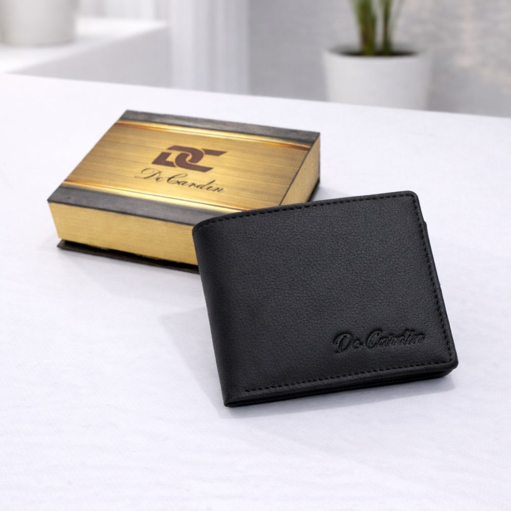 Designed for practicality, it features multiple card slots, a secure zipper coin pocket, and a dedicated cash compartment—all packed into a slim bi-fold design. Finished with subtle De Cardin branding and packed in a premium gift box, this wallet is a perfect everyday companion or a thoughtful gift.