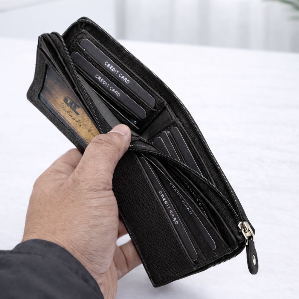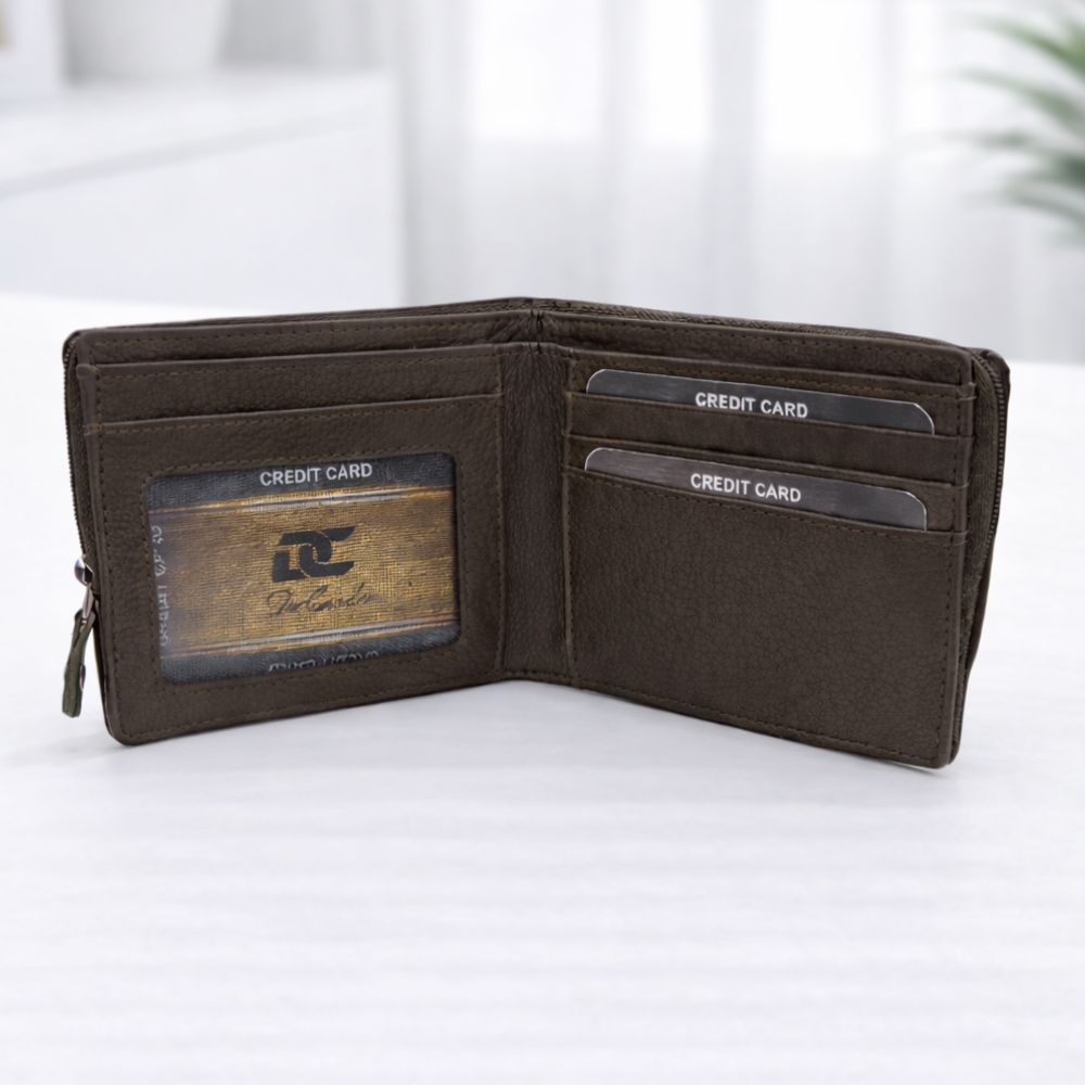 Upgrade your everyday carry with the DeCardin Premium Zipper Bi-Fold Leather Wallet, designed for men who want style, security, and smart organization. Crafted from high-quality textured leather, this wallet delivers a refined look while ensuring durability for daily use.
