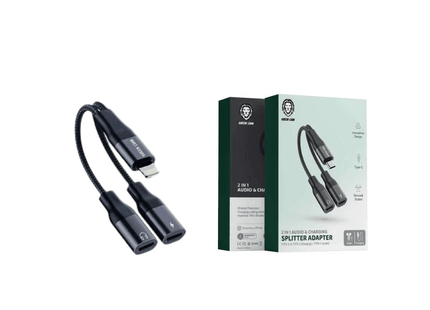Transform your iPhone's capabilities with the Green Lion 2 in 1 Audio & Charge Lightning Adapter. This innovative adapter lets you split one Lightning port into dual ports, empowering you to enjoy uninterrupted audio playback while keeping your device powered up. Whether you're listening to music, watching videos, or taking calls, this adapter ensures seamless integration of audio and charging functionalities without compromising sound quality.