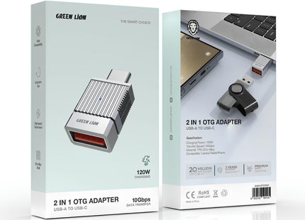 Green Lion 2-in-1 OTG 3.0 Adapter | USB-A to USB-C | 10Gbps Speed | 120W Power Delivery – Gray Upgrade... Read more