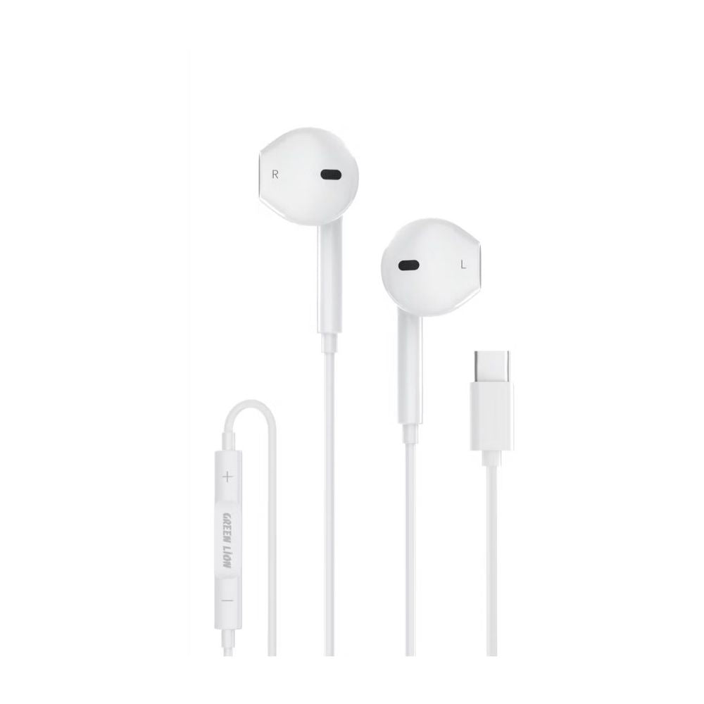 Green Lion Wired Stereo Earphones with Type-C Connector - White | High-Quality In-Ear Headphones