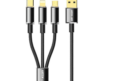 Green Lion Transparent 3 in 1 Braided Cable ( USB-C / Lightning / Micro ) 1M - Black