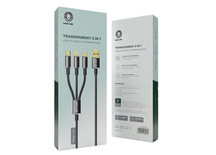 Green Lion Transparent 3 in 1 Braided Cable ( USB-C / Lightning / Micro ) 1M - Black The Green... Read more