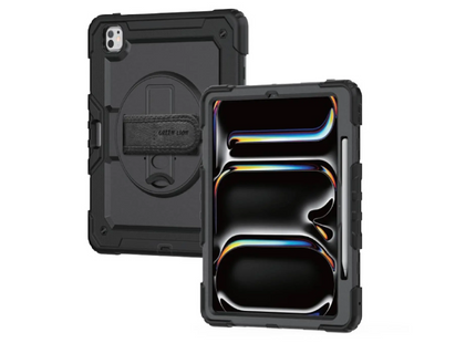 Green Lion Trioshield iPad Pro 13 Case with Pencil Holder, Adjustable Handle, and Shockproof Protection - Black