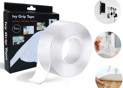 Enhance your home organization effortlessly with our Ivy Grip Tape. This transparent, double-sided adhesive tape offers strong adhesion, anti-slip properties, and is washable, removable, and reusable. Keep your items securely mounted without leaving residue behind. Perfect for various applications, it's a must-have for every household.
