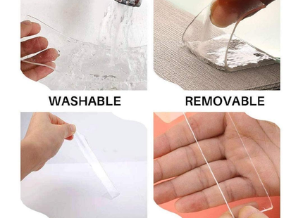 Strong Transparent Removable Grip Tape for Wall Mounting - Reusable Anti-Slip Double-Sided Tape
