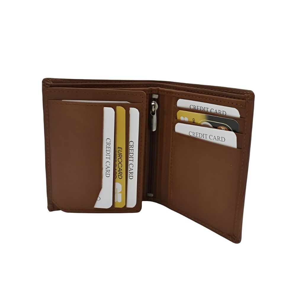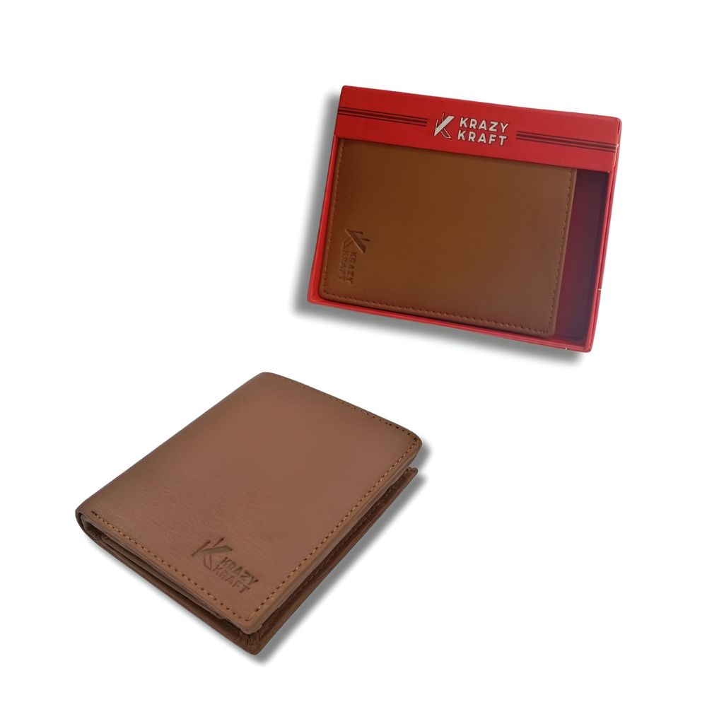 The KRAZY KRAFT GT-009 is a stylish and functional vertical bi-fold wallet designed for modern men. Crafted from genuine leather, it combines durability with a premium look and feel. With multiple card slots, a zippered pocket for coins, and ample space for cash, this wallet keeps your essentials organized while maintaining a sleek, slim profile.