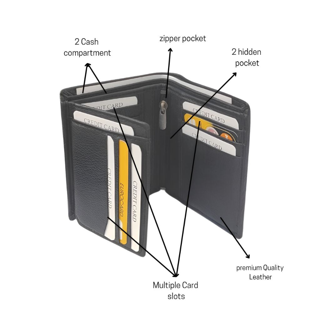 Upgrade your style and stay organized with the KRAZY KRAFT GT-009 Premium Vertical Leather Wallet.