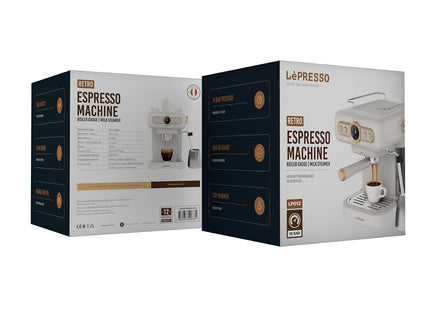 Featuring a powerful 15-bar pump, a precise boiler pressure gauge, and an easy-to-use steam control knob, the LePresso machine ensures every shot of espresso is brewed to perfection. The cup warming plate keeps your mugs ready at the ideal temperature, while the washable drip tray makes cleaning quick and hassle-free.