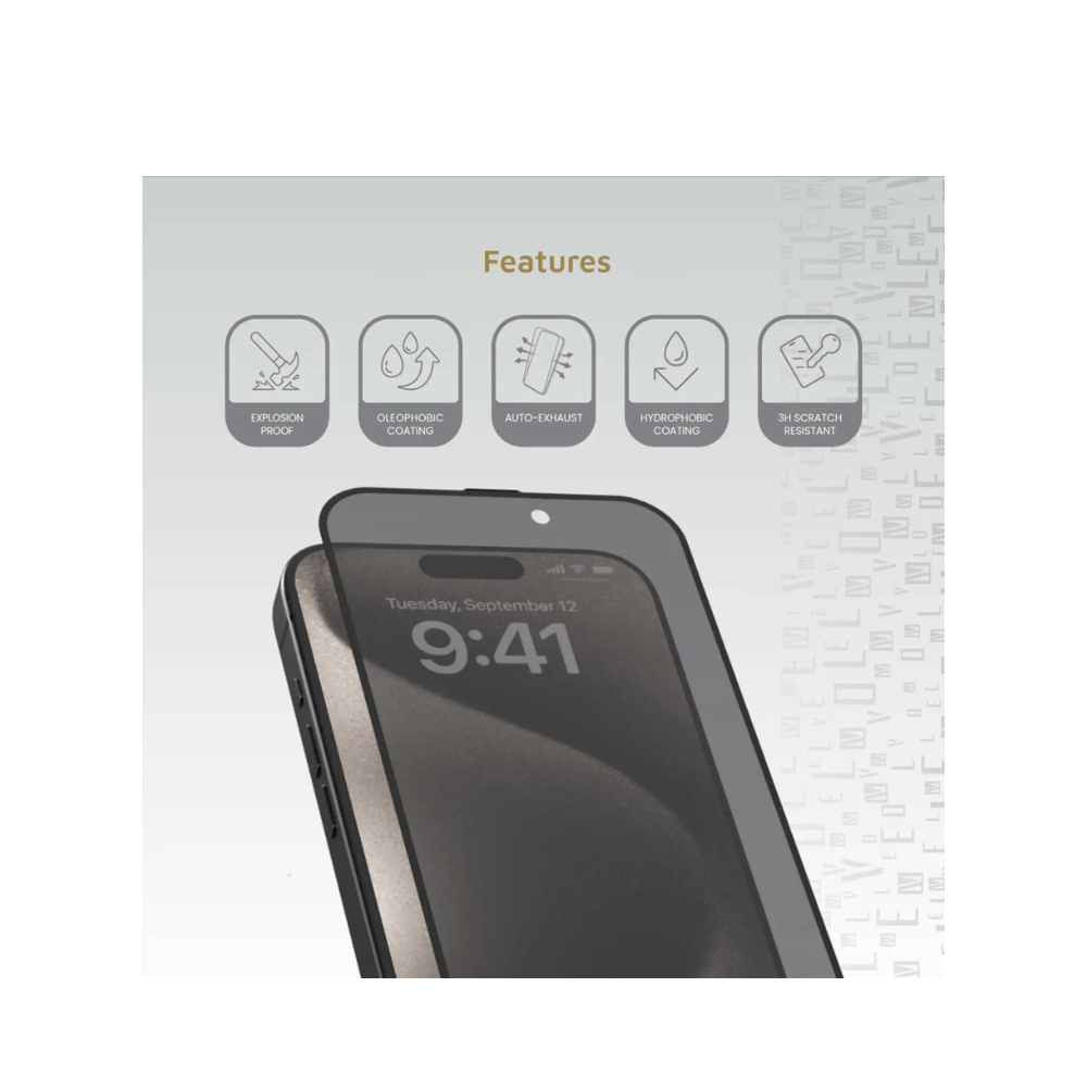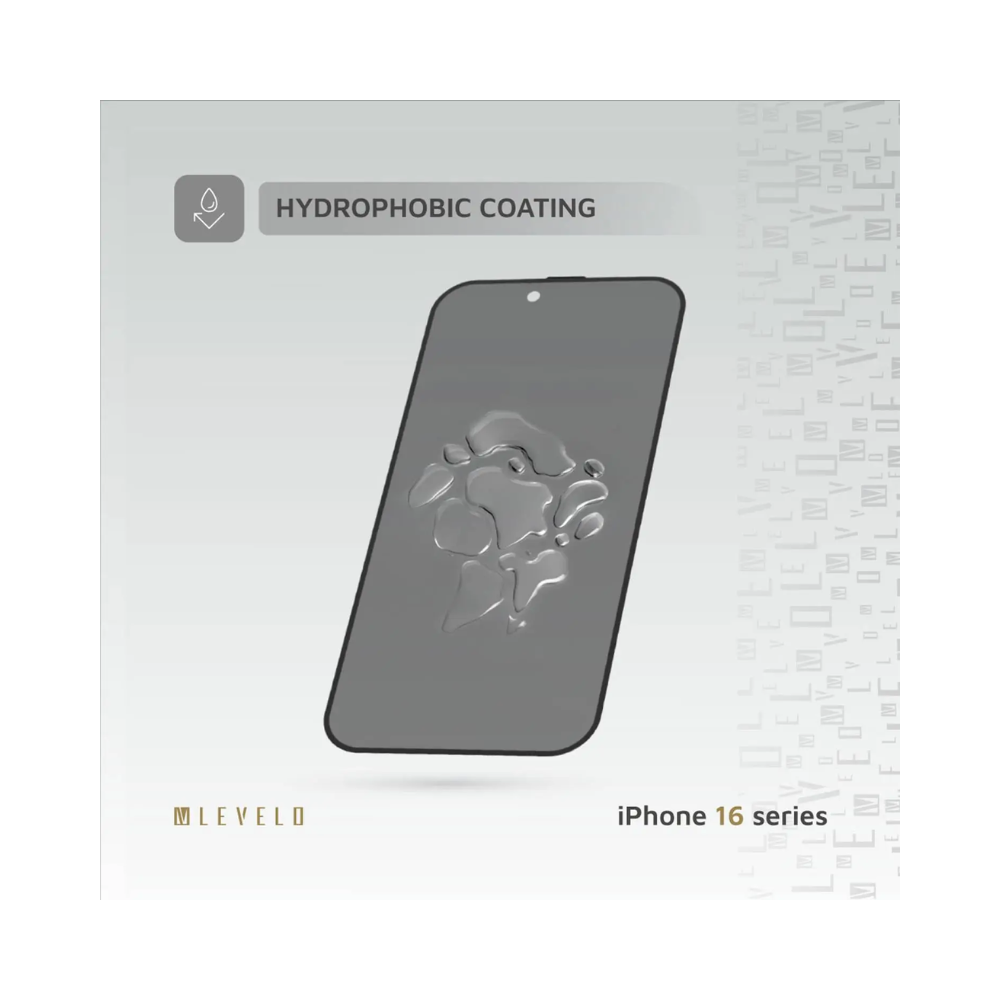Levelo 2.5D Silk Print Silicone Edge Privacy Screen Protector for iPhone 16 Pro - Waterproof, Scratch-Resistant, Oleophobic Coating