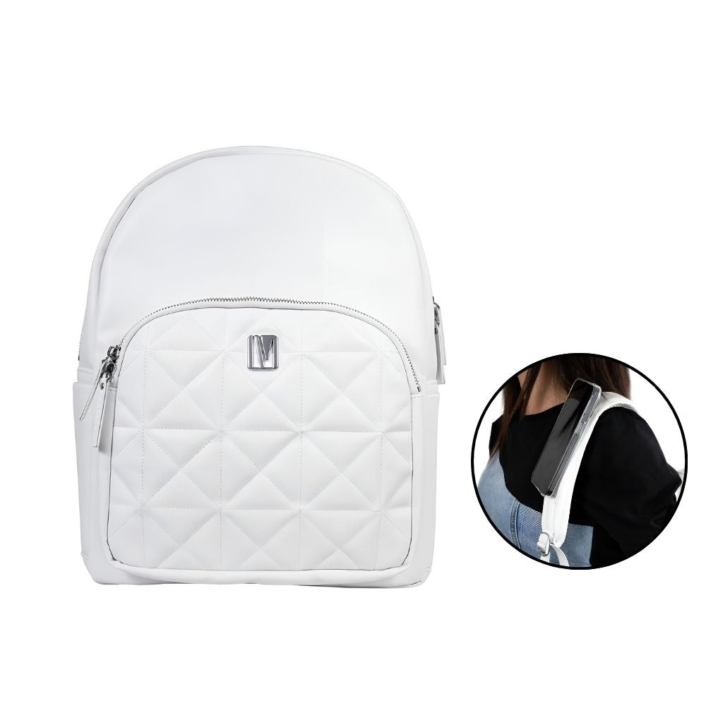 Levelo Albino Ladies Backpack with Magnetic Holder Strap – White
