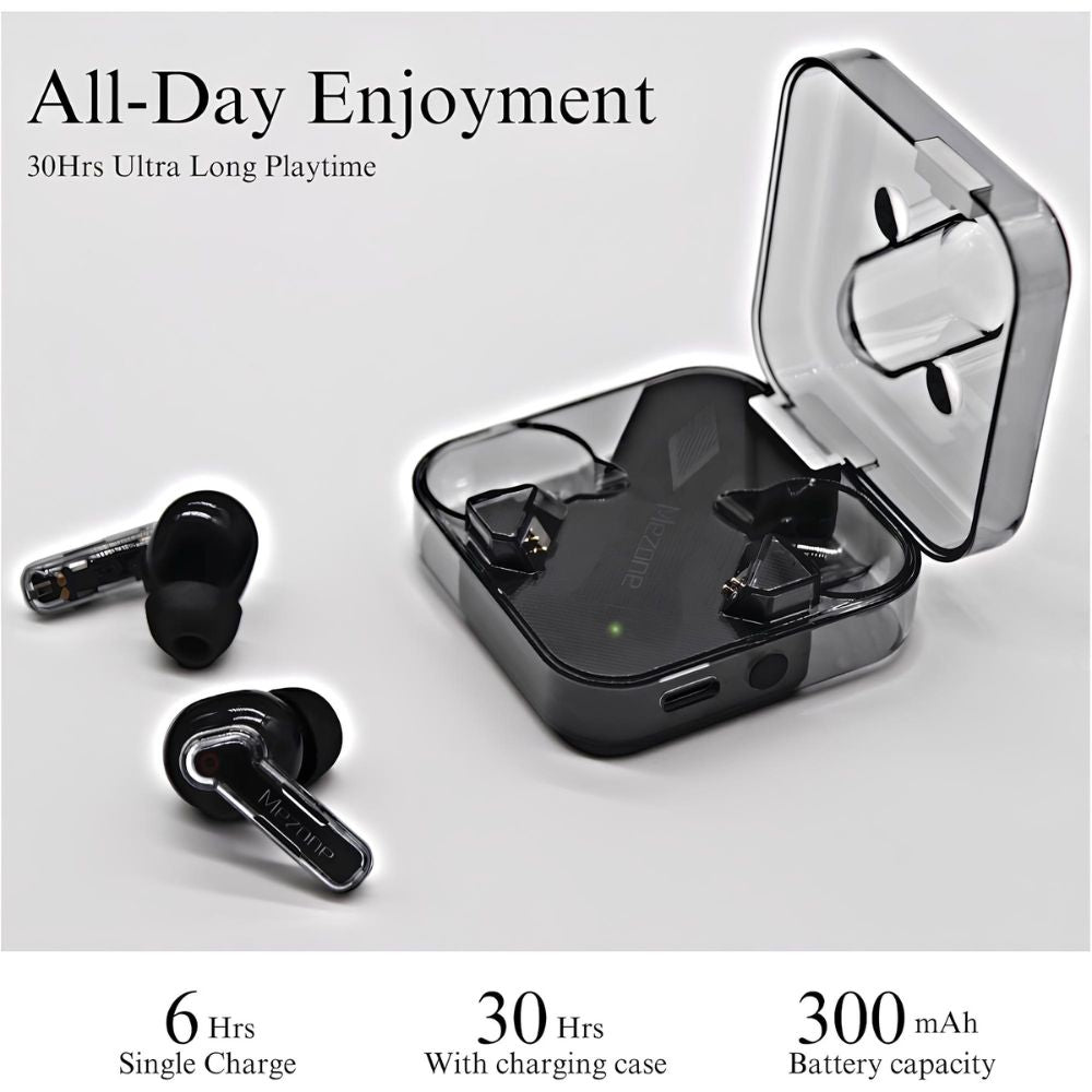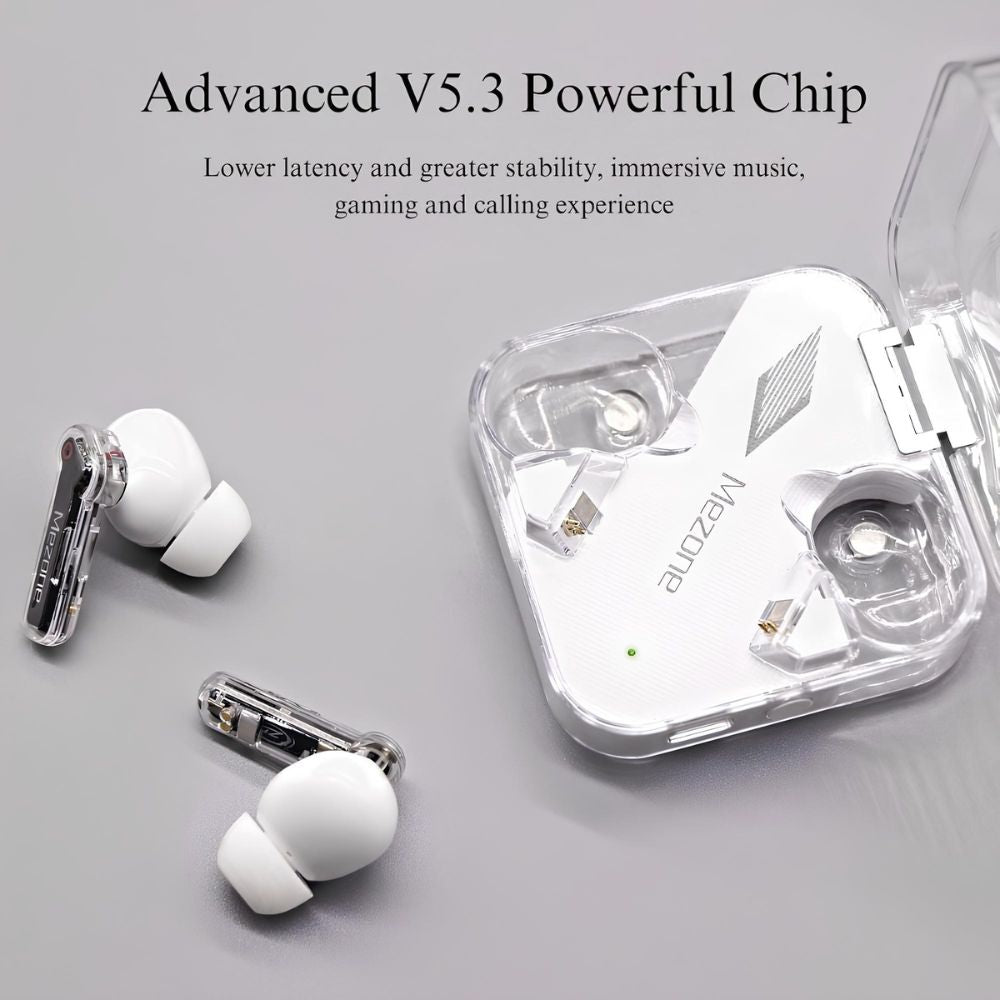 Whether you're commuting, working out, or relaxing at home, the MEZONE Quarts ensures uninterrupted, crystal-clear audio with ultra-low latency and stable connectivity. The sleek, transparent design offers a modern look, while the lightweight, ergonomic build ensures a comfortable fit for all-day use.