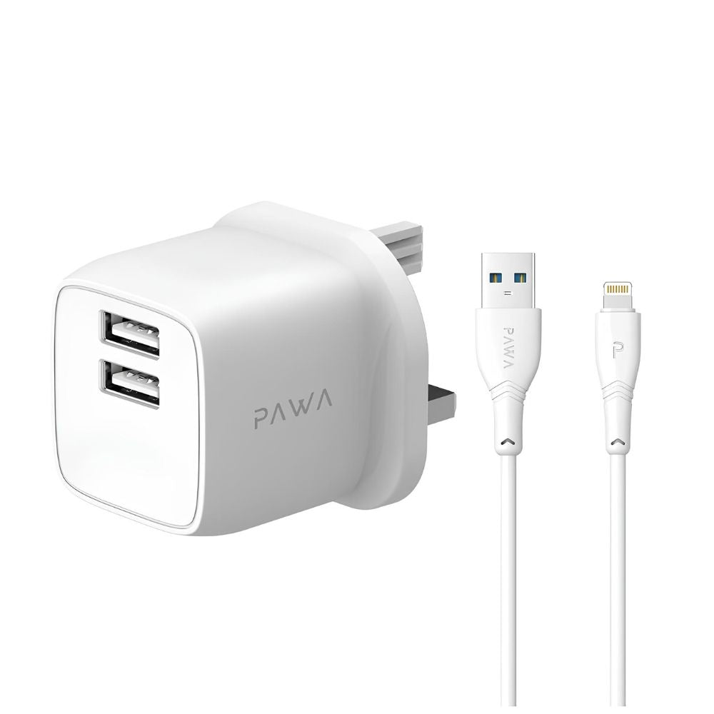 PAWA PocketMini Dual USB Travel Charger UK Standard USB-A to Lightning Cable