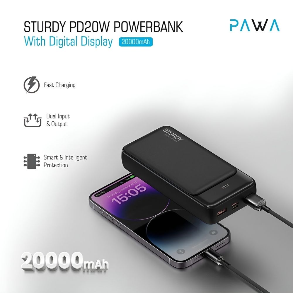 Choose the PAWA Sturdy Power Bank PD 20W – 20000mAh and stay powered wherever life takes you.