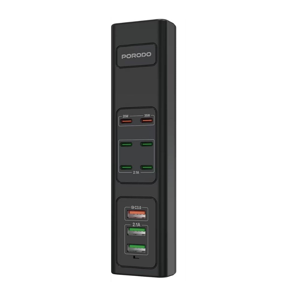 Power up all your devices effortlessly with the Porodo 85W Multi-Port USB Charging Hub – the ultimate charging solution for home, office, and travel. Engineered with high performance and convenience in mind, this hub delivers reliable, high-speed charging for multiple devices at once.