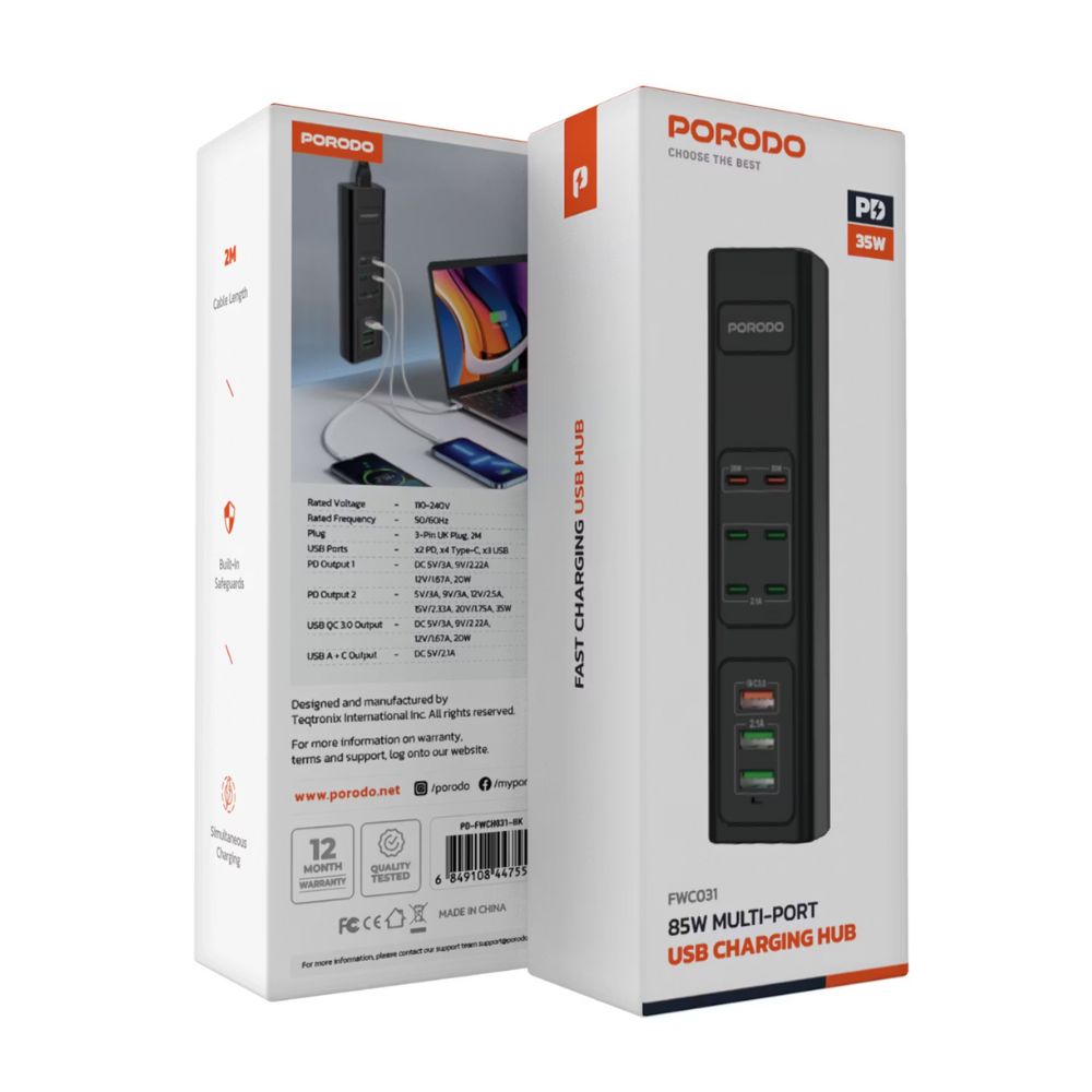 Order the Porodo 85W Multi-Port USB Charging Hub now and simplify your power setup – whether at home, in the office, or on the move!