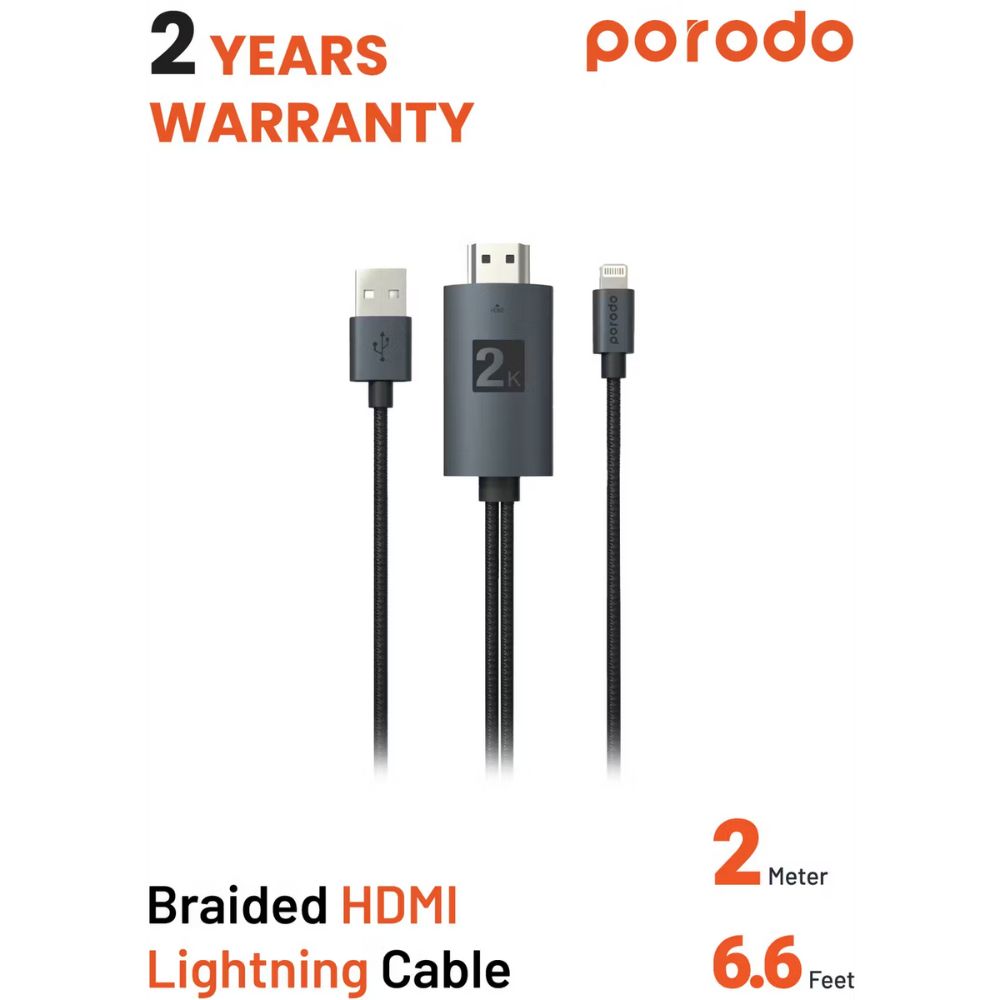 Porodo Braided 2K HDMI Lightning Cable 2M – Xpressouq