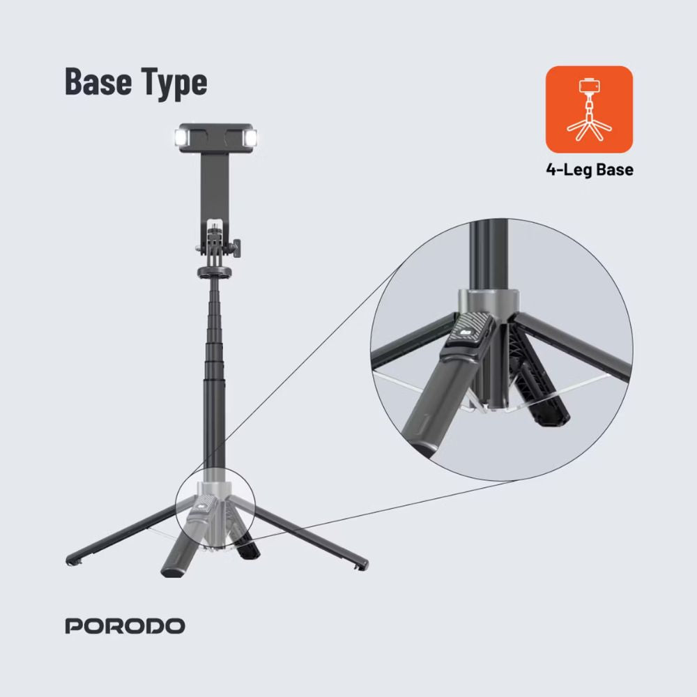 Porodo Dual Lighting Selfie Stick with 4-Leg Tripod & Remote – Black