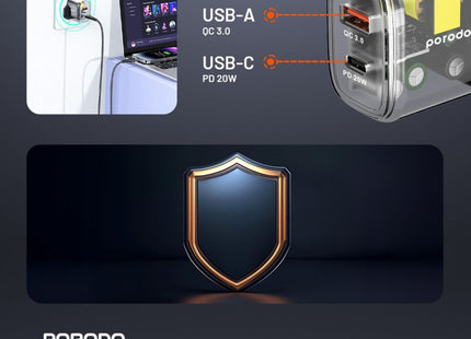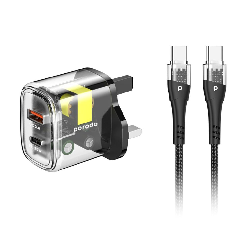 Porodo Dual Output Transparent Quick Charger USB-C PD And USB-A QC With USB-C To USB-C Cable 1.2m UK The Porodo... Read more