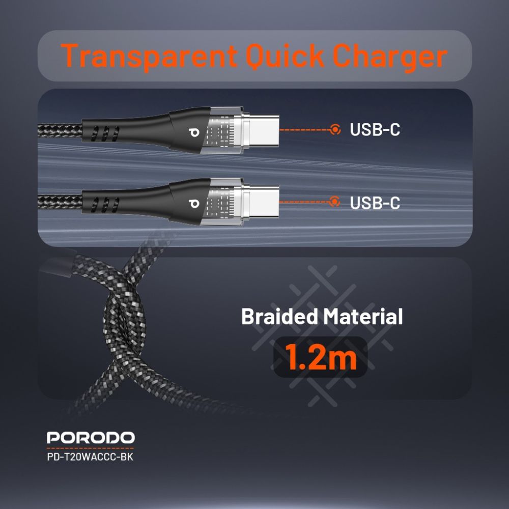 Porodo Dual Transparent Charger with USB-C to USB-C Cable 1.2M - Black – Xpressouq