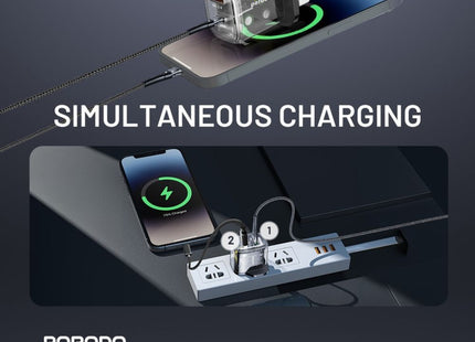 • Dual Output: Charge two devices simultaneously with 18W QC (Quick Charge) and 20W PD (Power Delivery).