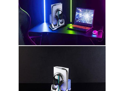Porodo Gaming PS5 Cooling and Charging Hub with RGB Lighting, Headphone Stand, and 12-Disc Storage