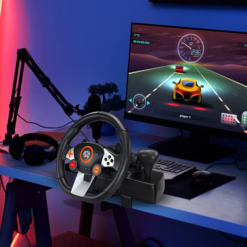 This gaming steering wheel is an ideal choice for racing enthusiasts and gamers who demand realistic simulation and easy-to-use compatibility with their favorite gaming consoles. Get ready to race faster, harder, and more realistically than ever before with the Porodo Gaming Steering Wheel!