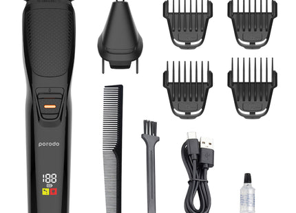 Porodo Lifestyle 6-in-1 Rechargeable Grooming Kit with Stainless Steel Blade, Nose Trimmer, and USB Type-C Charging