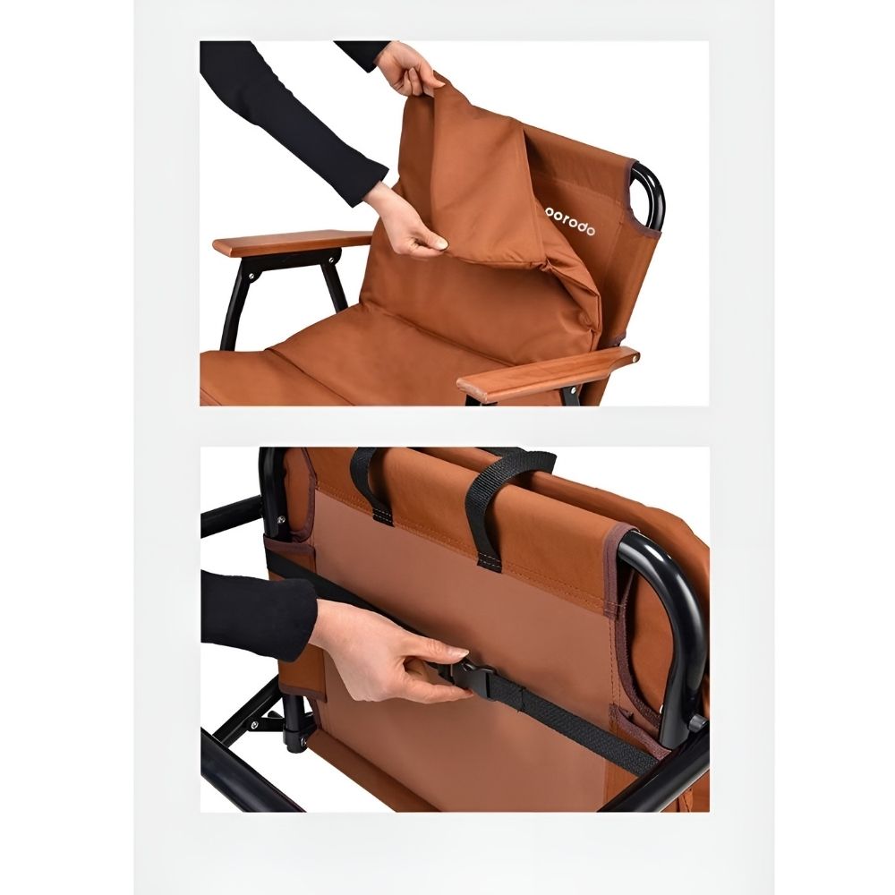 Built with a sturdy aluminum frame, premium 600D Oxford fabric, and elegant beech wood armrests, it offers exceptional durability while maintaining a refined look. The cushioned seat provides enhanced comfort, making it ideal for long hours of sitting during camping trips, picnics, beach outings, or backyard relaxation.