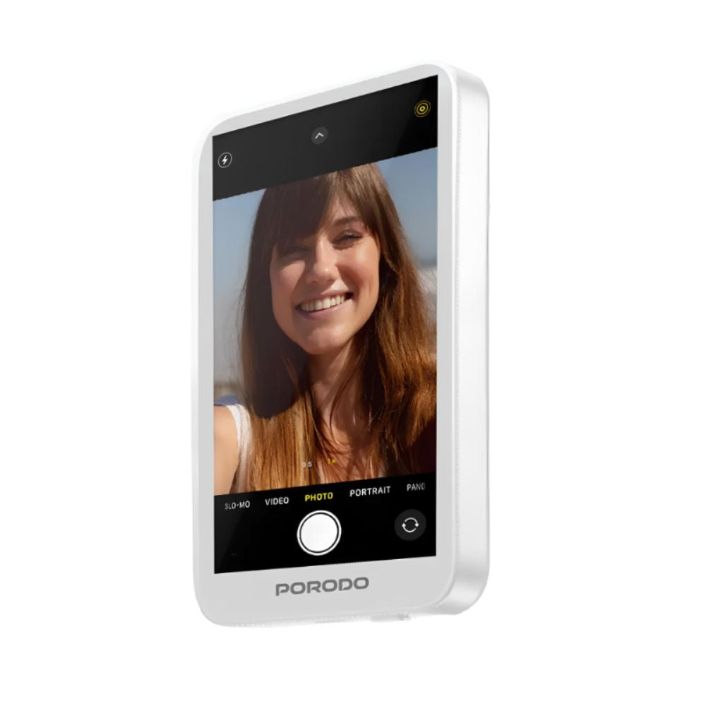 The Porodo Lifestyle 5008 is a sleek magnetic mirroring monitor designed to enhance your selfie and video content creation. Attach it magnetically to your smartphone or compatible stand, and enjoy a portable screen to preview or edit your shots in real-time. Perfect for vloggers, streamers, content creators, and anyone who wants better framing and monitoring while on the go.