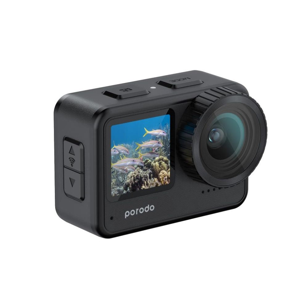 Porodo Waterproof 4K Action Camera with Dual Display, WiFi, Touch Screen, and 4K Video Recording