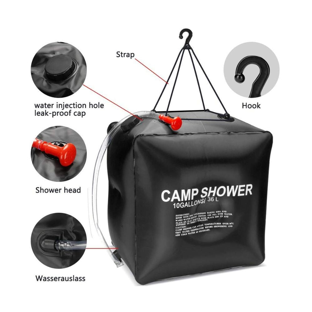 • Large Capacity – Holds up to 10 gallons / 36 liters for multiple showers.