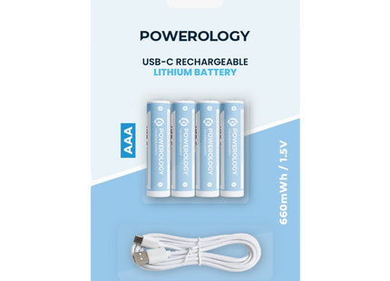 Powerology 1.5V Type-c Rechargeable Lithium-ion Battery AAA Battery 660mWh 4pcs per Pack