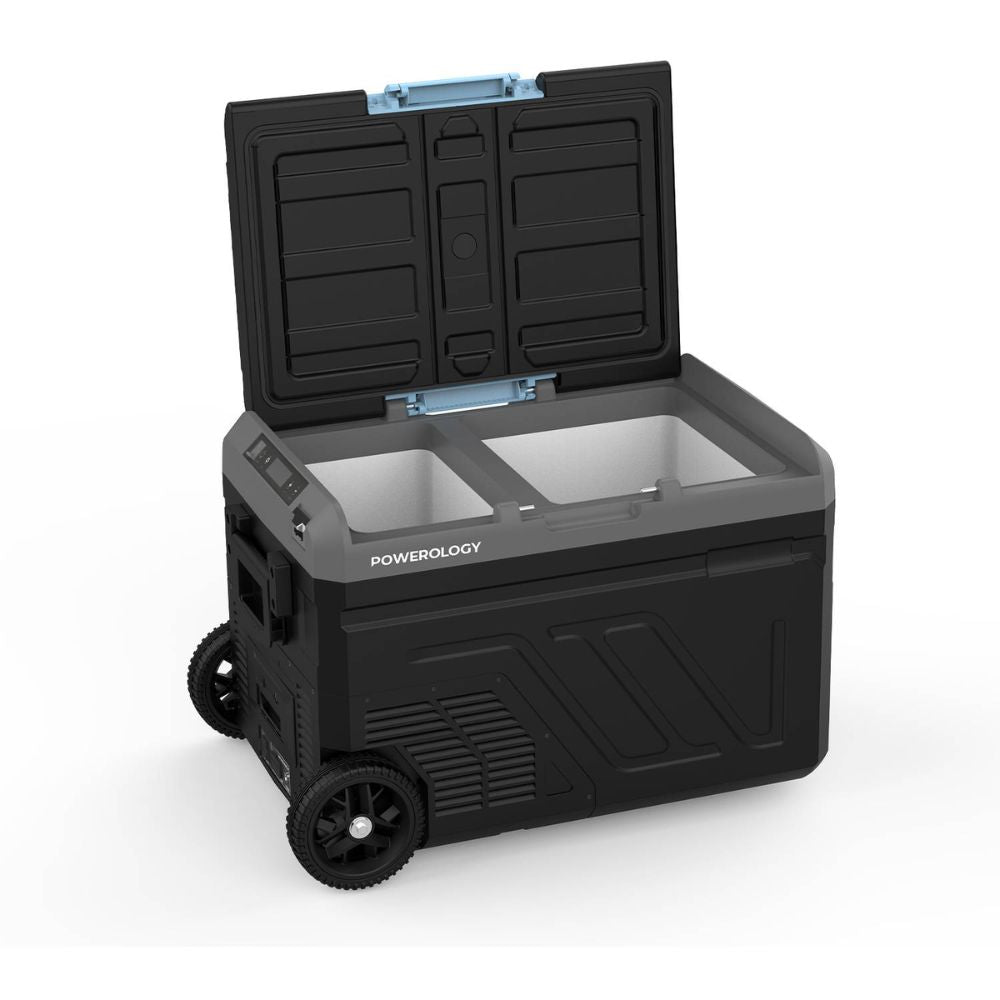 Powerology 40L Dual Compartment Portable Fridge with Trolley | Long-Lasting Battery & Wheels for Travel and Outdoor Use