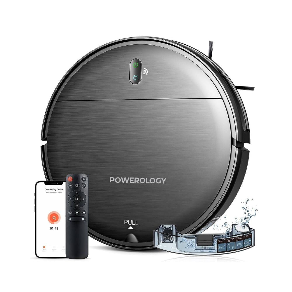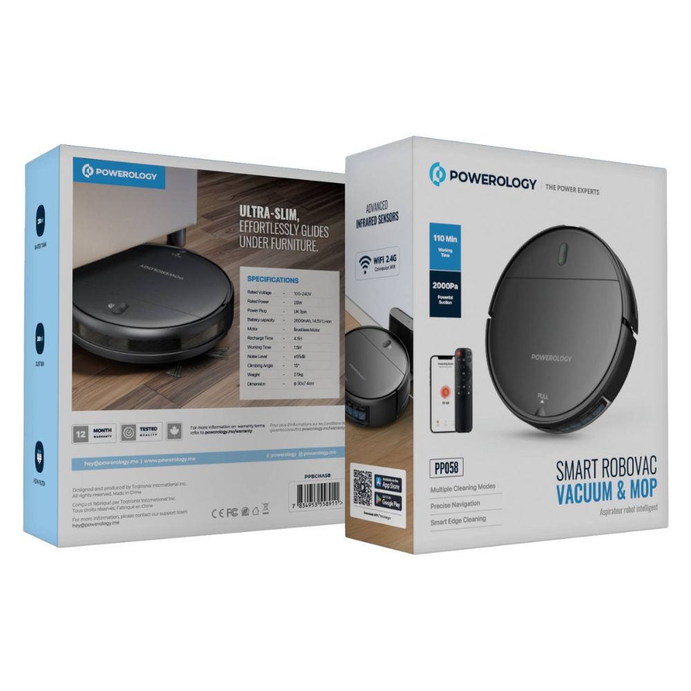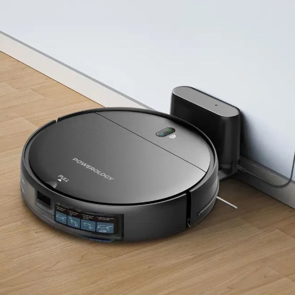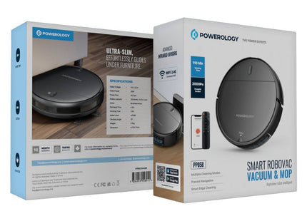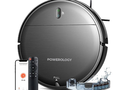 Effortlessly maintain a spotless home with the Powerology Smart Robovac Vacuum & Mop, the intelligent cleaning companion designed to simplify your daily chores. Combining powerful vacuuming and precise mopping capabilities, this all-in-one device is perfect for tackling dust, debris, spills, and routine cleaning tasks.