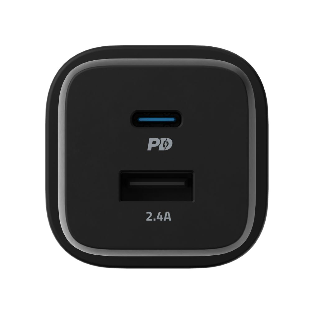 • Dual Ports: USB-C 20W PD and USB-A 2.4A allow simultaneous device charging.