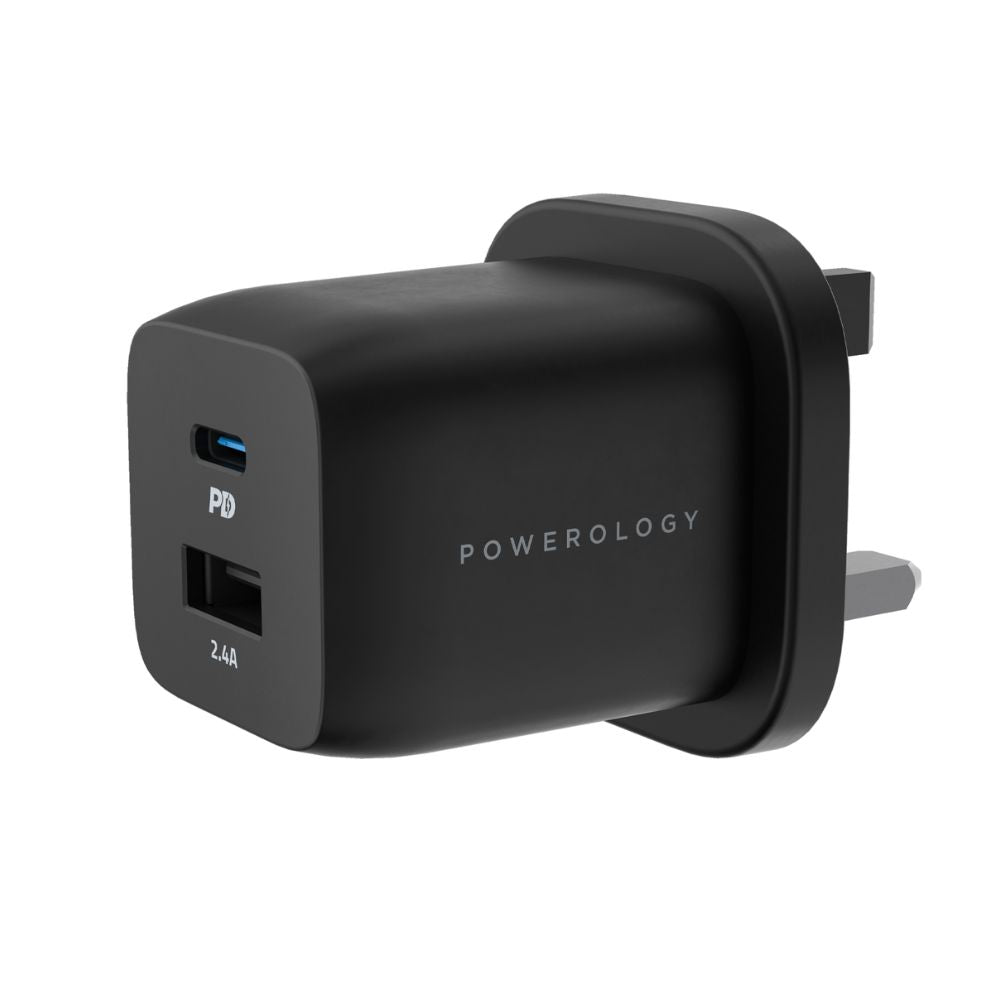 Powerology Ultra-Quick 32W GaN Charger 20W PD & Includes 1.2m/4Ft USB-C to Lightning Cable