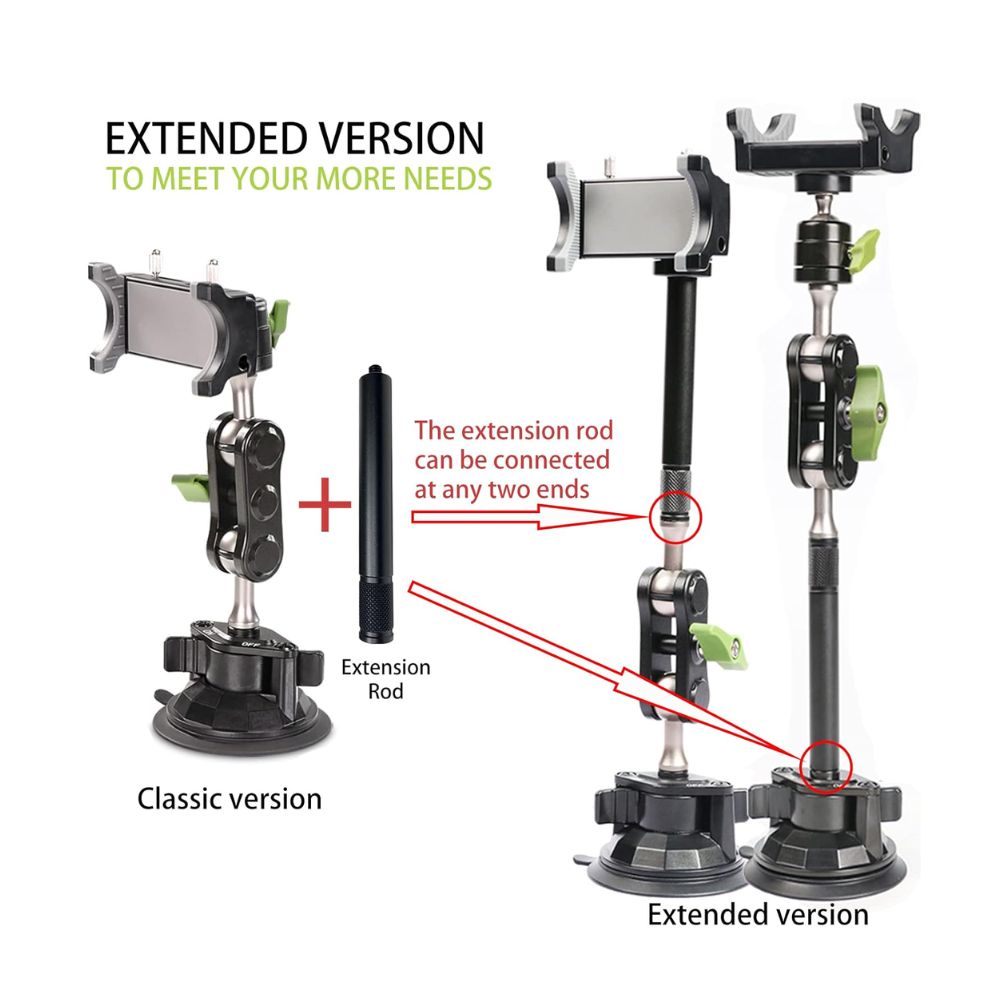 • Universal Phone Clamp – Fits most smartphones securely with anti-slip grip.