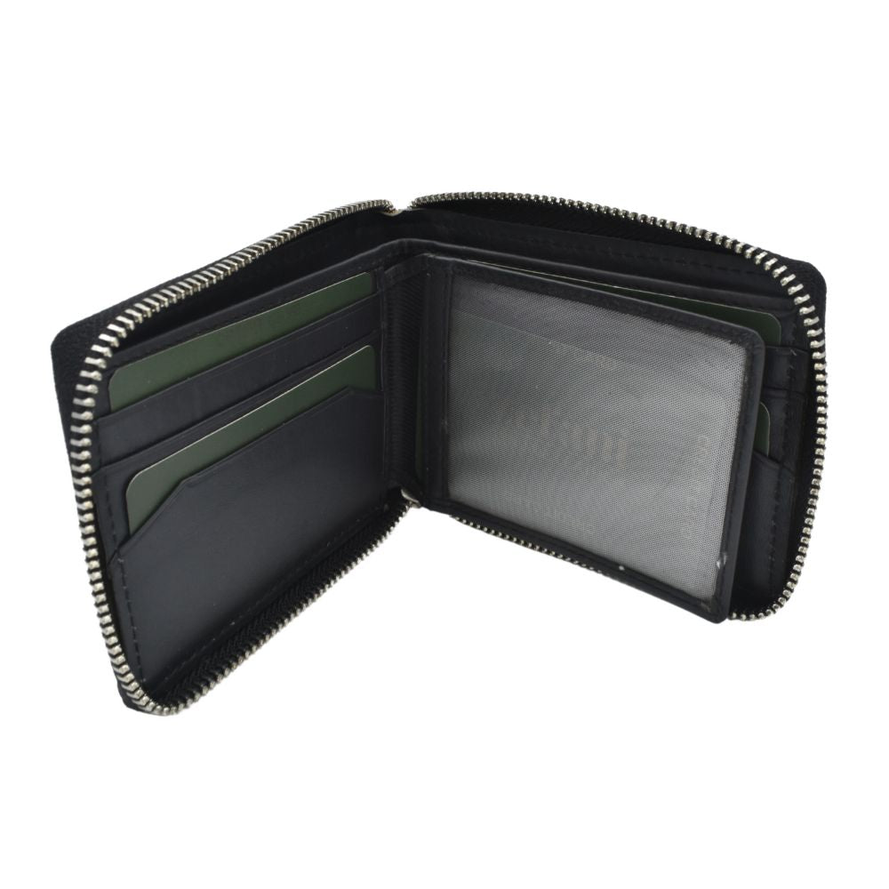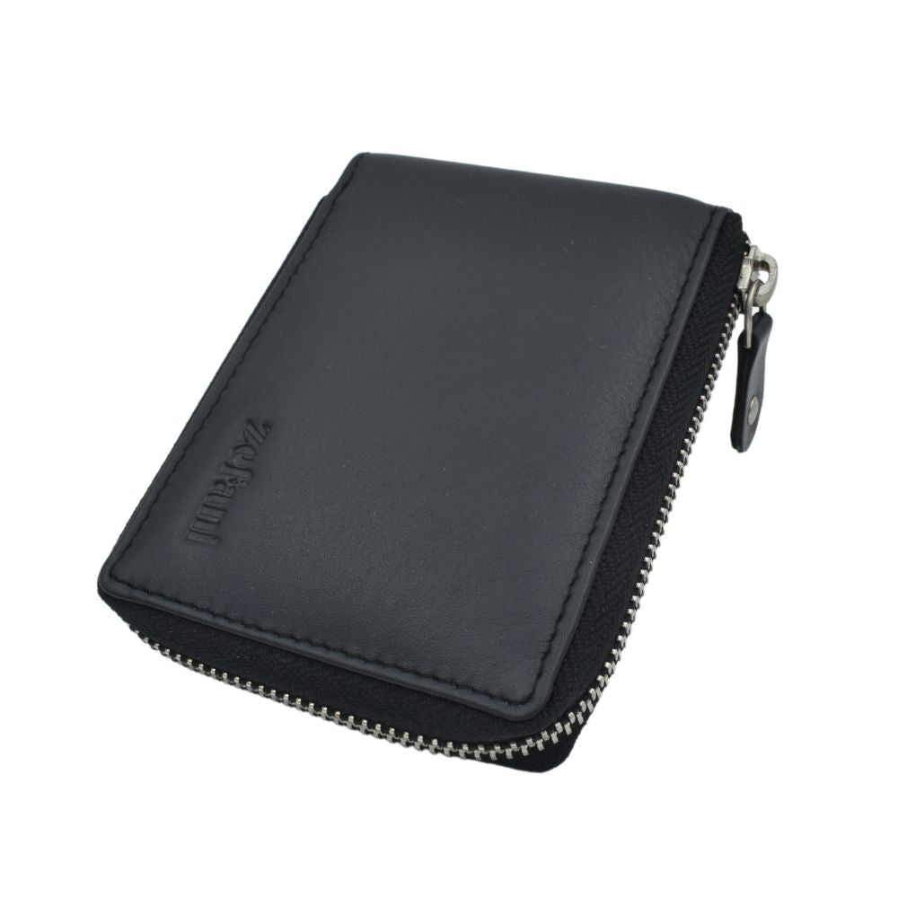 Stay organized and secure with this Zefani Premium Round Zip Bi-Fold Leather Wallet.